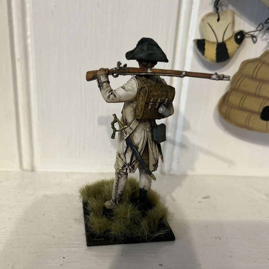 Here at le Gatinois, we’re not just marching and sewing machines. Soldat Saintpierre also recently painted this Chasseur (made by FeR Miniatures) in the regimental colours. It has a few differences to our interpretation of the Grenadier compagnie, but we’re sure you’ll agree a remarkable piece of work nonetheless!