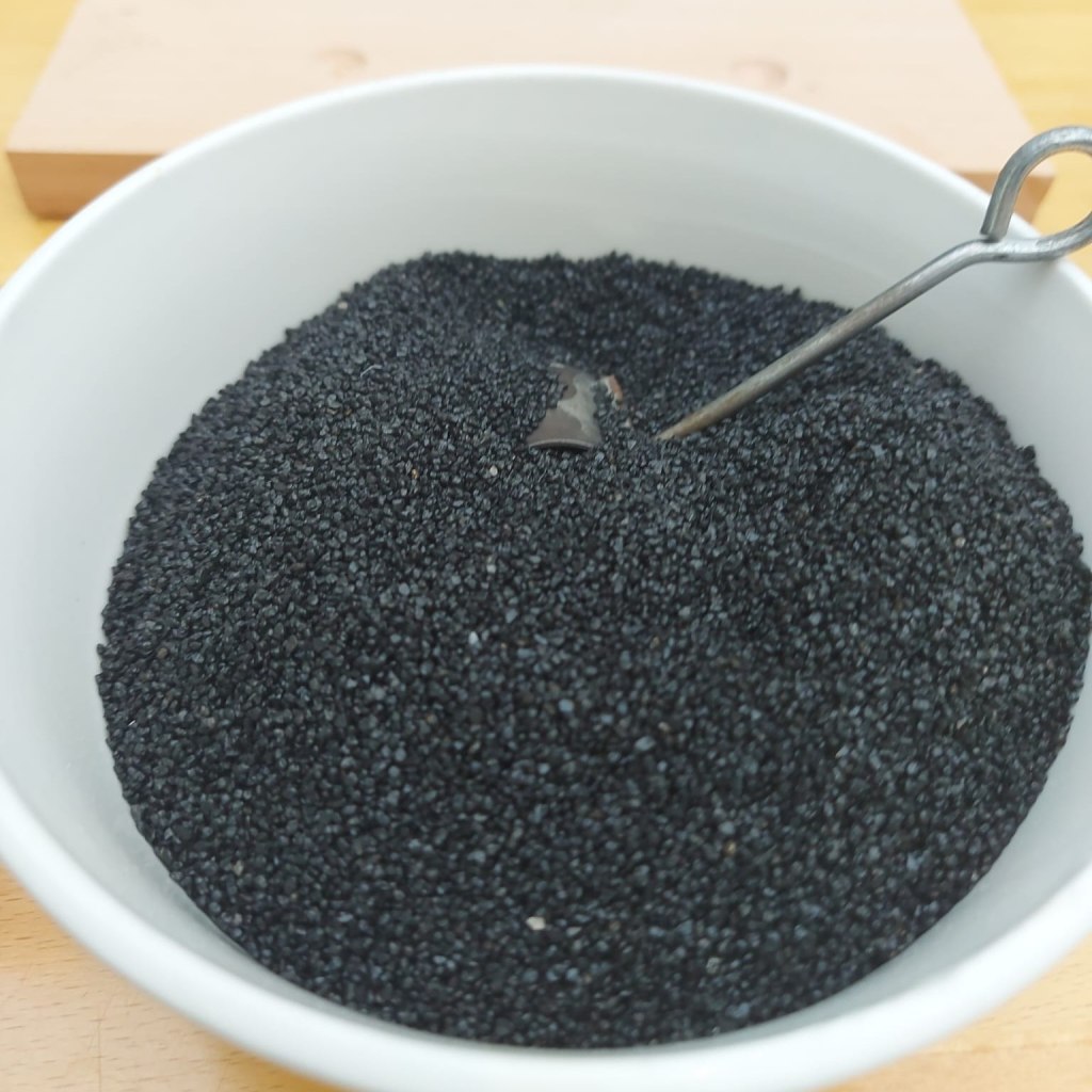 – a “copper measure, in the shape of a truncated cone, open at the top; when full, it must contain one-fortieth of 489 grams of powder.” Ours unfortunately is not this exact size/shape, although this is something we are working on aquiring.