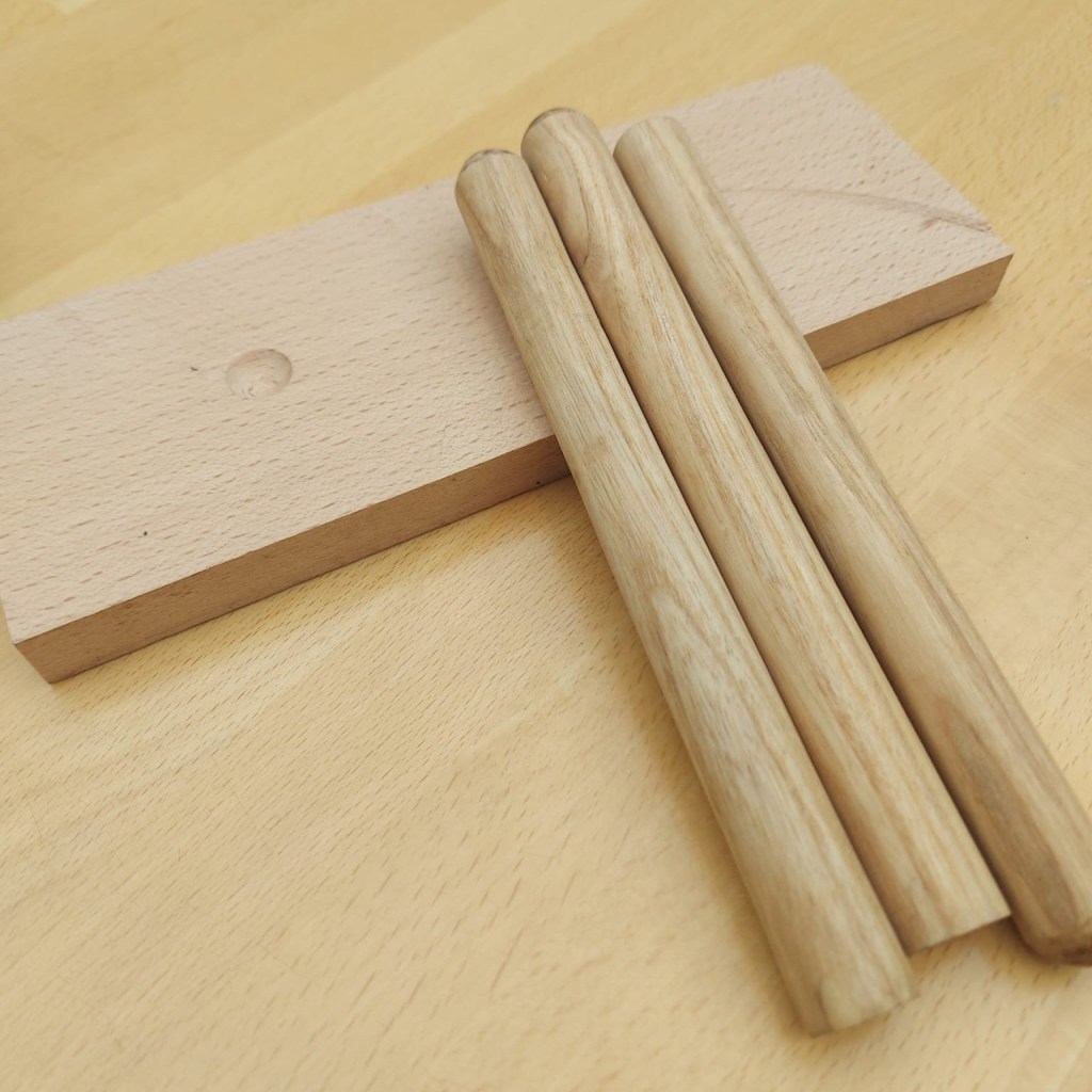 – a “wooden mandrel, 7 inches long and 6 lines 9 points in diameter; these must be perfectly cylindrical and made of hard, dry wood. One end must be rounded, and the other hollowed out to receive one-third of the bullet.” Historical Military Accoutrement Reproductions has very kindly provided us these lovely mandrels in Elm.