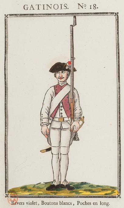 Le Régiment Gatinois, newly created in 1776, were one of the regiments which were stationed in the French colony of Saint Domingue (now Haiti). The soldats, having been transported directly from France, would later see service in several campaigns. Small detachments of le Gatinois were present at the Sieges of Savannah (1779) and Pensacola (1781), with a major contribution during the Siege of Yorktown, in Autumn 1781, where the grenadier company was particularly instrumental in the victory.